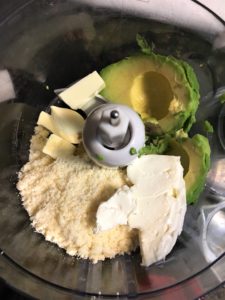 1. Cut and peel the avocado and place it in the food processor. Then add in all other dry ingredients.