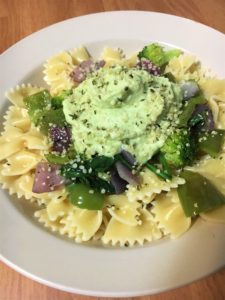 This sauce has a kick to it. The combination of garlic, Parmesan cheese, and lime juice really amps the flavor up! It was a hit with every member of my household – I let them stick their fingers in the food processor after I poured all the sauce out 😉 Although this is meant as a sauce, it can be used as a dip for veggies if you’re feeling fancy! So get to processing and enjoy this beautiful, green goodness!