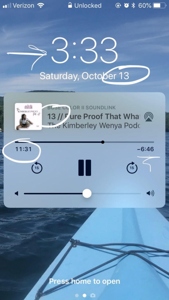 Anyway, I decided upon the Kimberley Wenya Podcast (which is amazing, check it out) and cued up three episodes. I got in the bath and started listening. All three episodes mentioned one of her masterclasses she had just released, so I looked up that masterclass and it was $44. AND when I checked my phone to see how long was left in the podcast, this is what I saw: